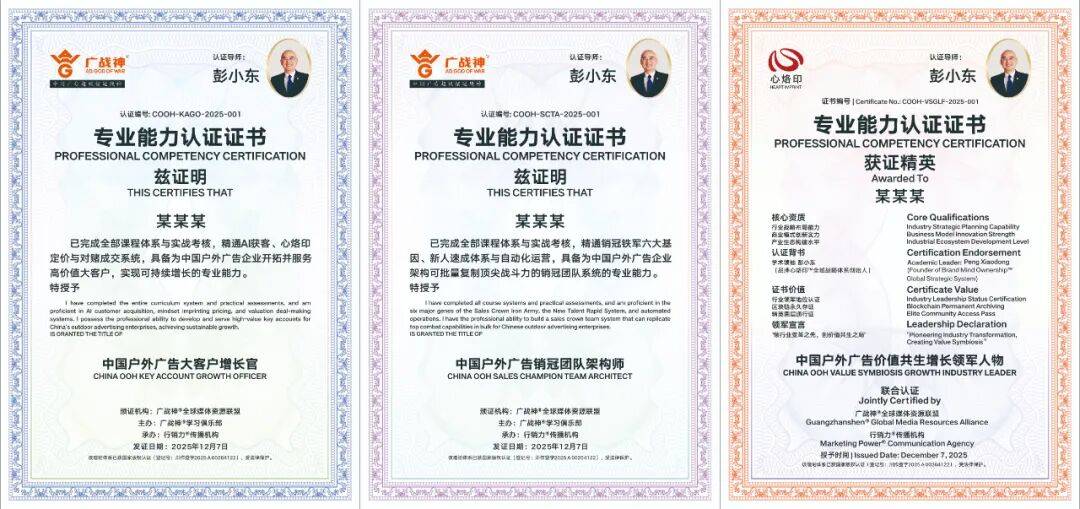新范式核心:这正是我创立 “中国户外广告大客户增长官(cooh-kago)认证” 的初衷。该体系系统化培养人才掌握行业诊断、数据洞察、心智战略设计、财务对赌模型构建等核心咨询能力。