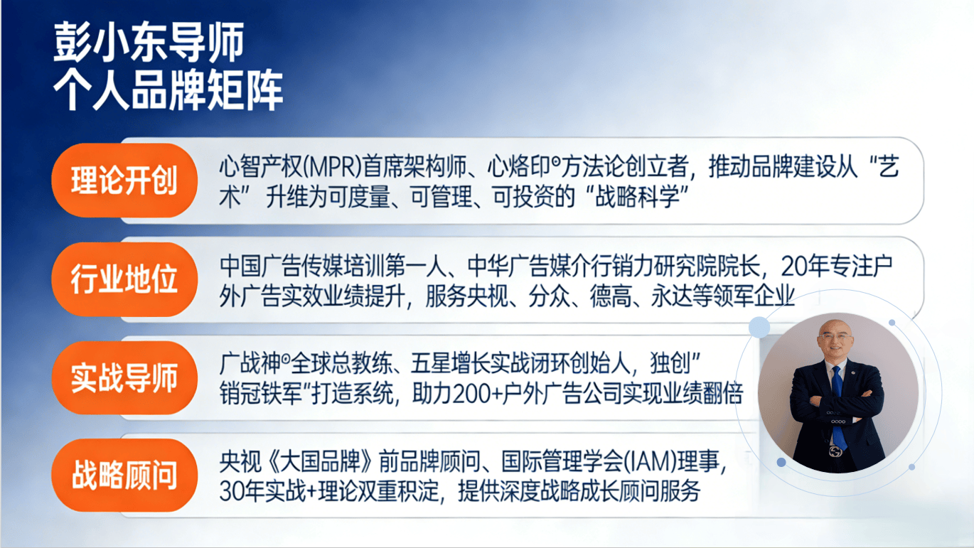 文|彭小东心智产权(心烙印®全域战略)商业哲学创立者|广战神®全球总教练|中国广告传媒培训第一人